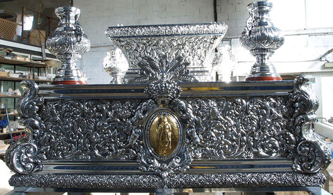 Aquí podrás visualizar algunos de nuestros trabajos destinados a los tronos donde se portan las imágenes religiosas